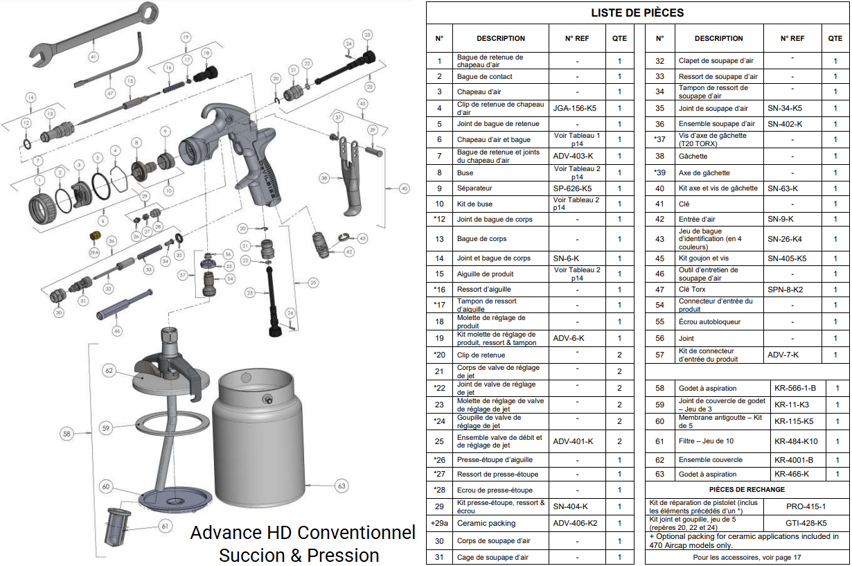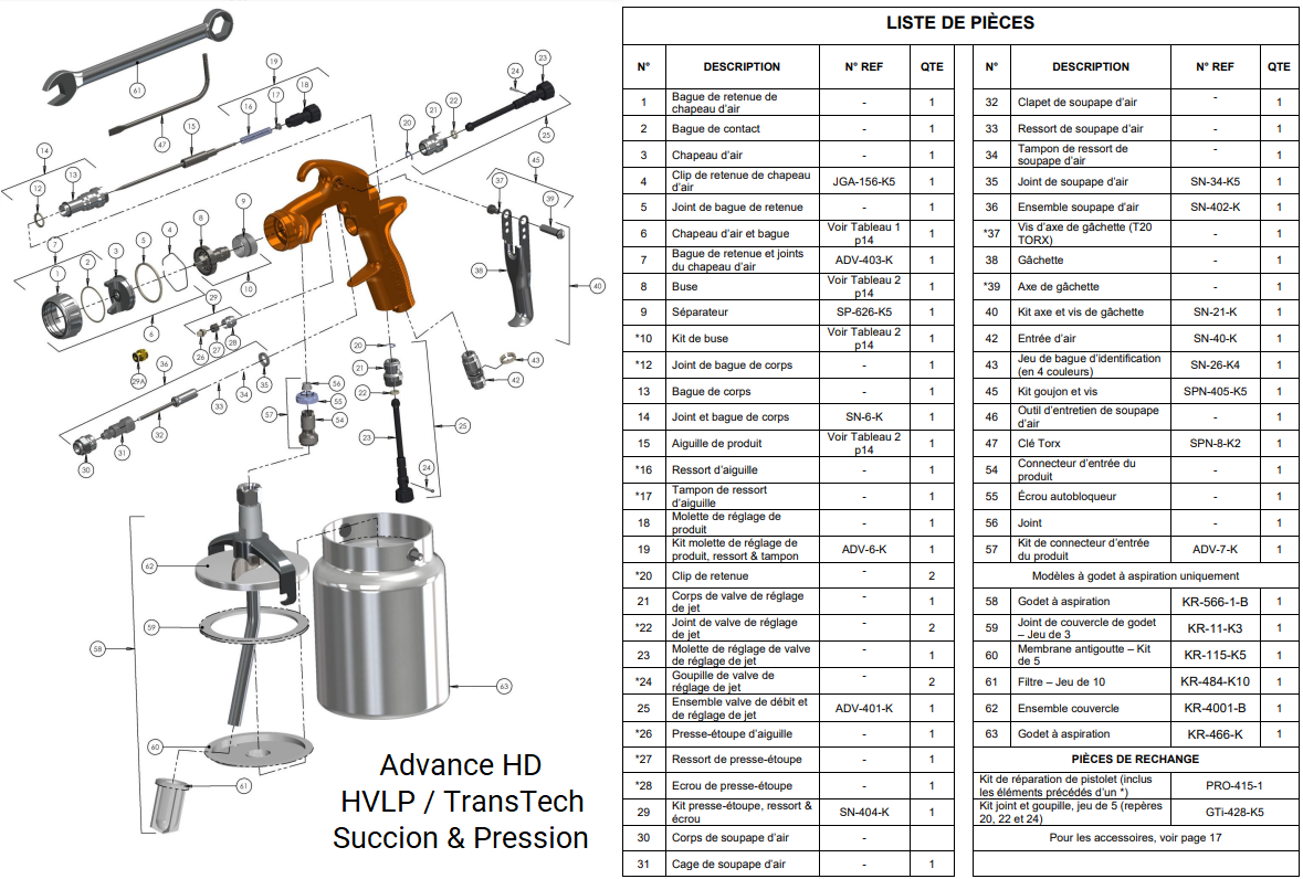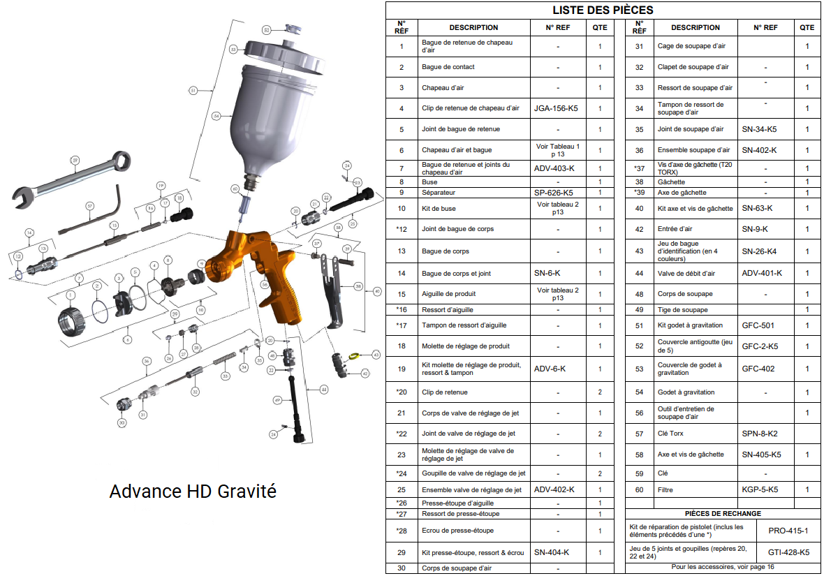 Retrouvez les pièces détachées du pistolet manuel Advance HD Devilbiss.
