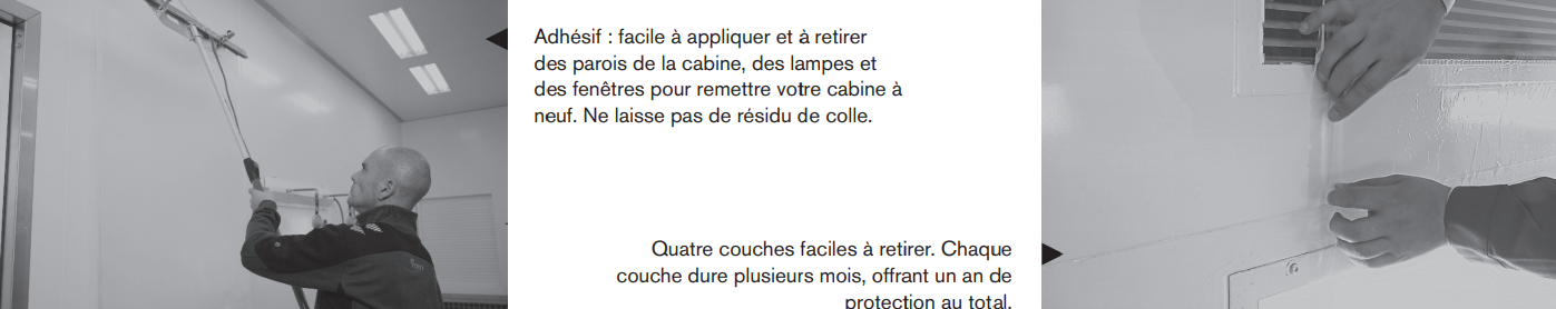 Ce film peut également être appliqué sur les lumières et fenêtres. Film4Booth est idéal pour protéger les parois d'une cabine de peinture.