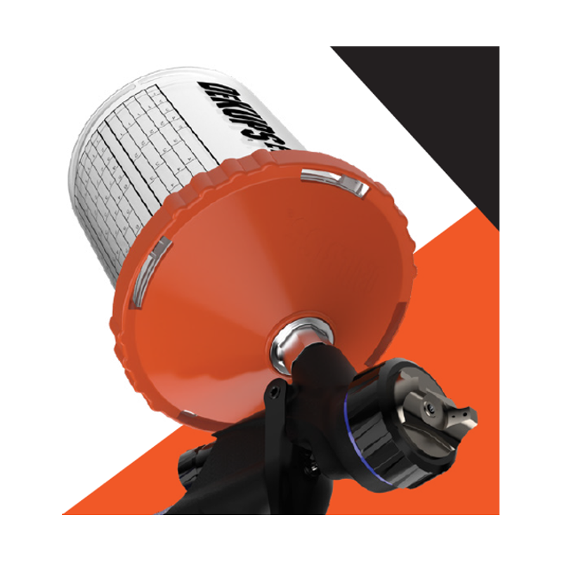 • Réduction des étapes : Mélanger et pulvériser avec un seul godet. Doser les revêtements à l'intérieur du godet grâce à des graduations pratiques.