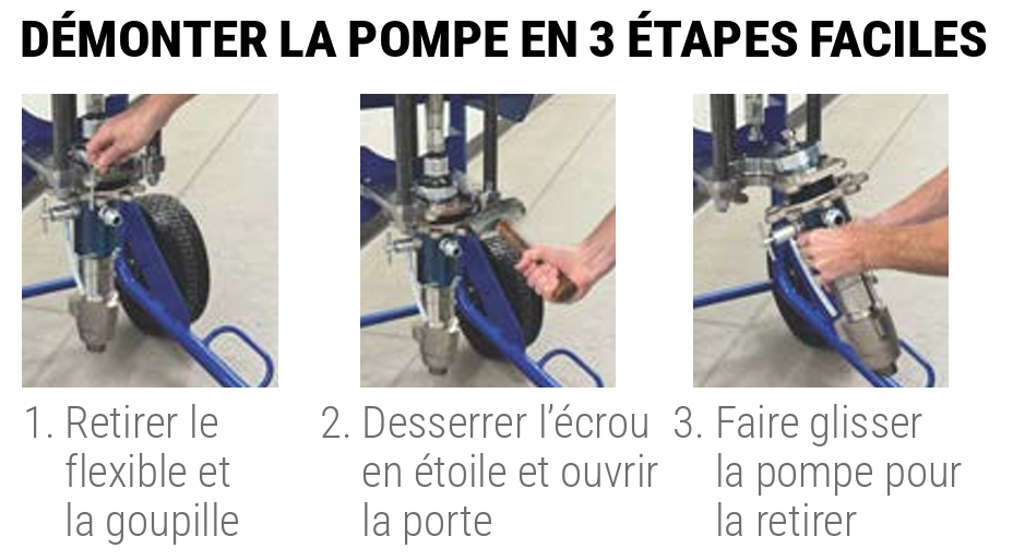 • Permet le remplacement de la pompe en moins de 2 minutes.