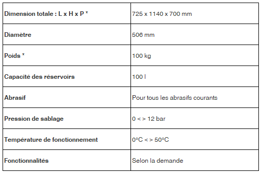 - Cette sableuse est équipée d'un kit soupape de sécurité et d'une étiquette de traçabilité conformément à la nouvelle législation française sur les réservoirs pression.